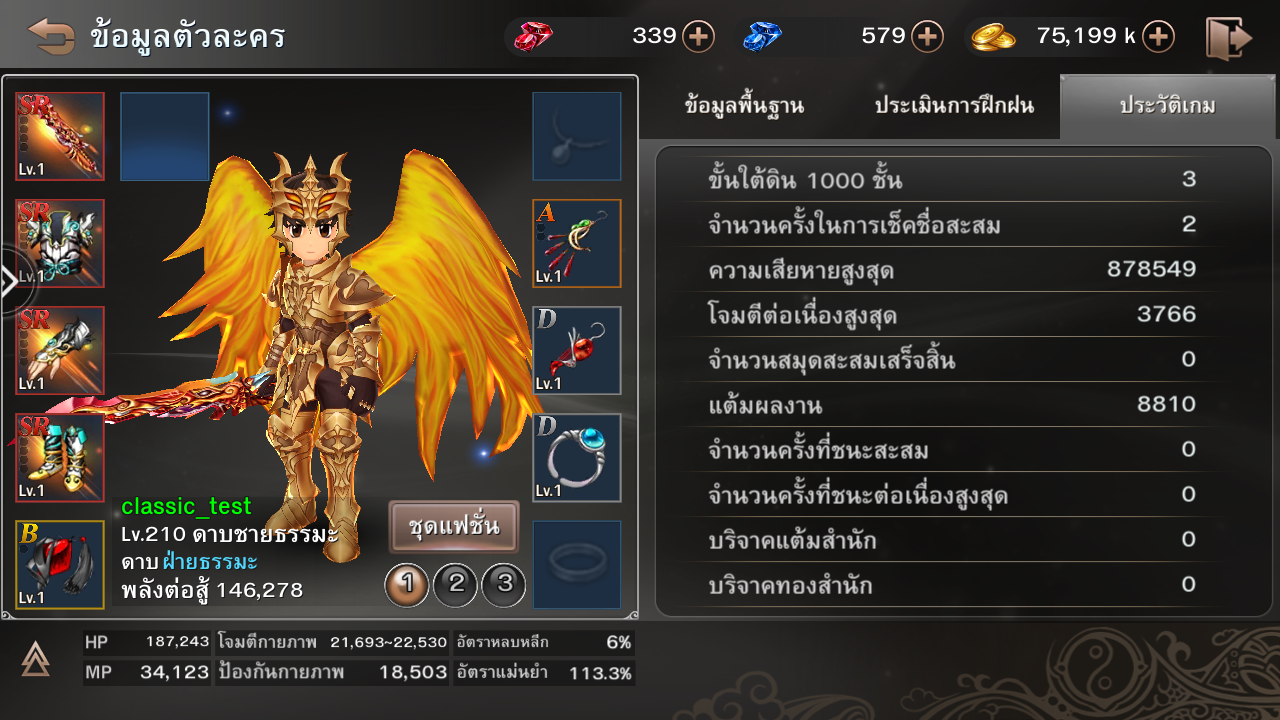 ประวัติการเล่นเกมของตัวละครนั้นโดยละเอียด