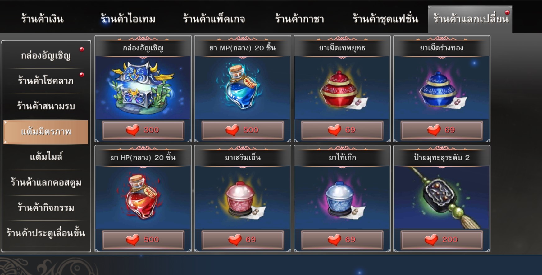 ร้านค้า → ร้านค้าแลกเปลี่ยน → แต้มมิตรภาพ