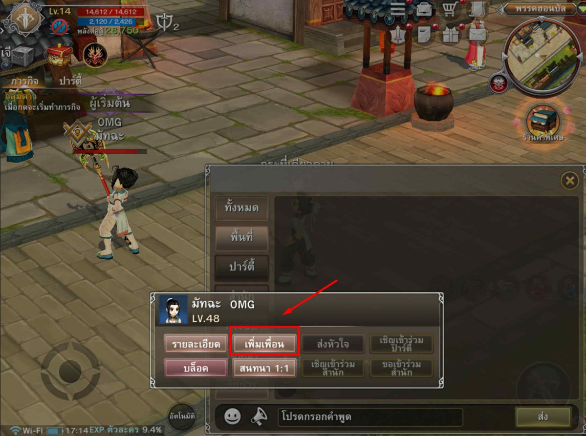 เพื่อนๆ สามารถกดรายชื่อผู้เล่นอื่นๆ ที่ช่องแชท และเพิ่มเพื่อนได้ทันทีจากเมนูเพิ่มเพื่อน