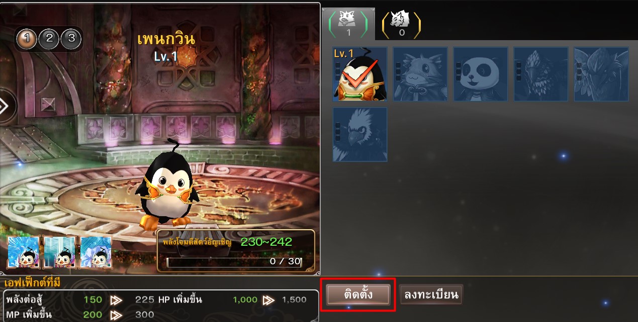 เมื่อทำการเก็บได้ครบ 10 ชิ้น จึงจะสามารถอัญเชิญสัตว์ชนิดนั้นๆ ออกมาได้ ด้วยการกด “ติดตั้ง”