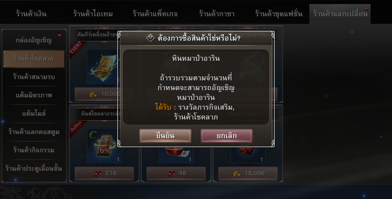 วิธีที่ 3 – สามารถซื้อได้จาก ร้านค้าแลกเปลี่ยน > ร้านค้าโชคลาภ และซื้อหินชิ้นส่วนสัตว์