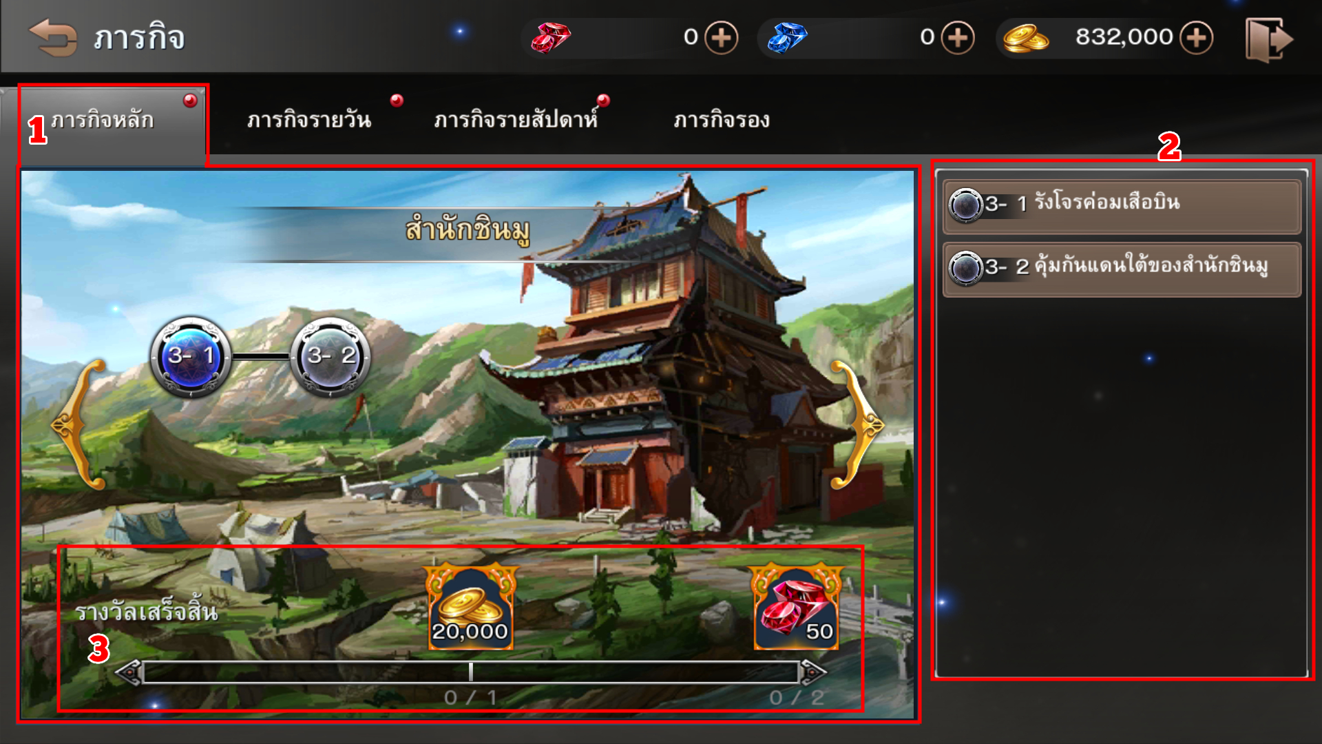 - ปุ่มเริ่มทำภารกิจรอง