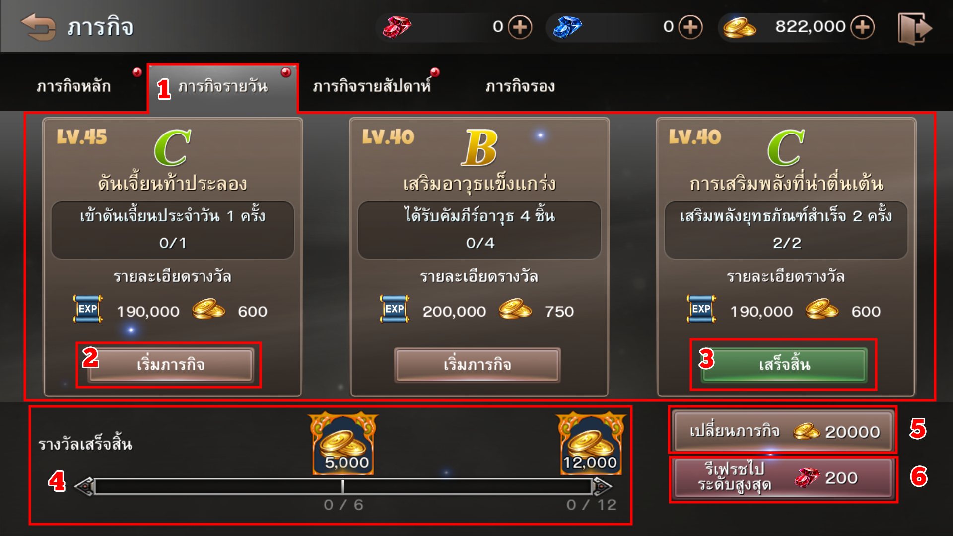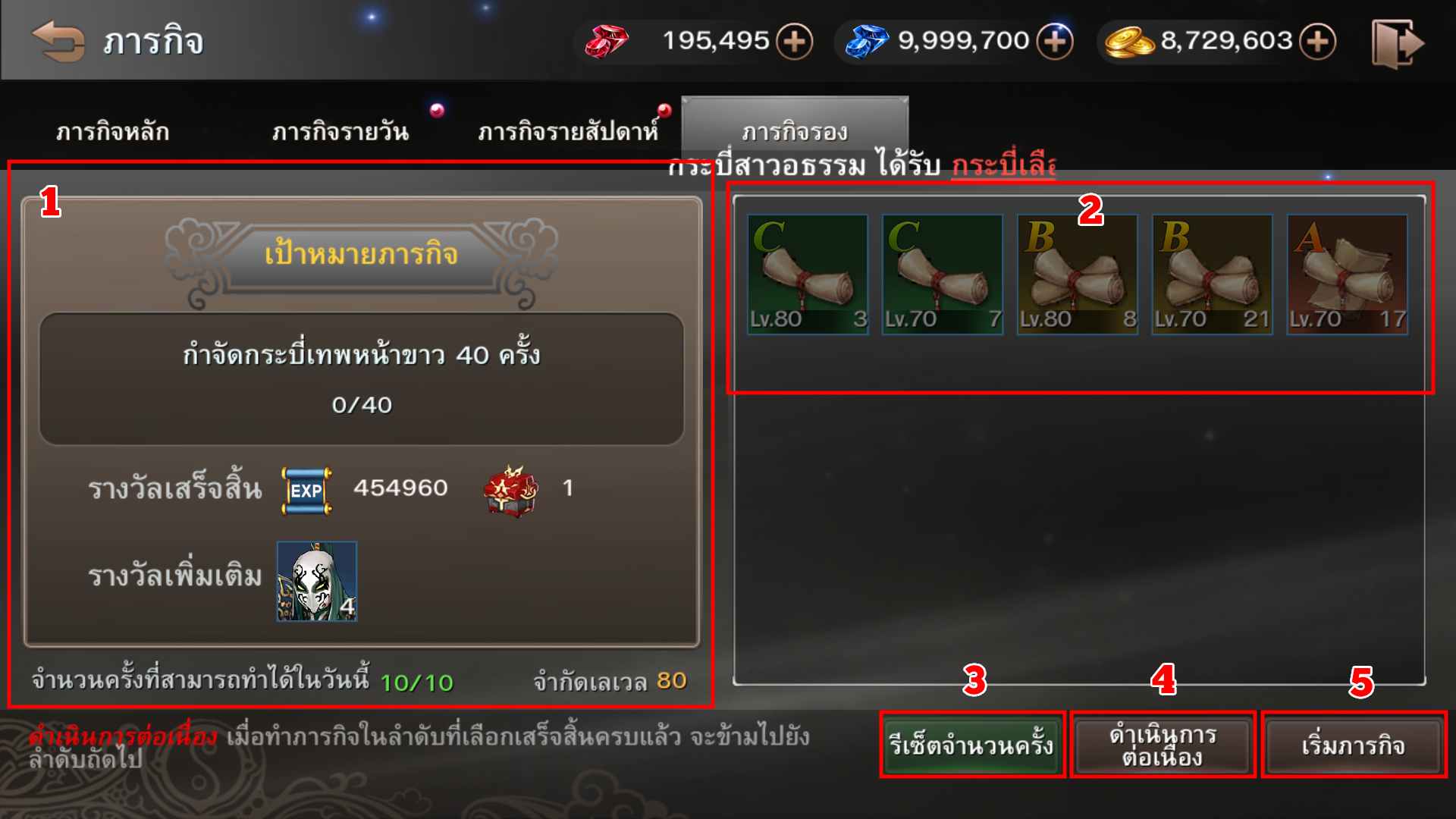- เป้าหมายของการทำภารกิจรอง (ทำได้ 10 ครั้งต่อวัน และ สามารถรีเซ็ตได้)